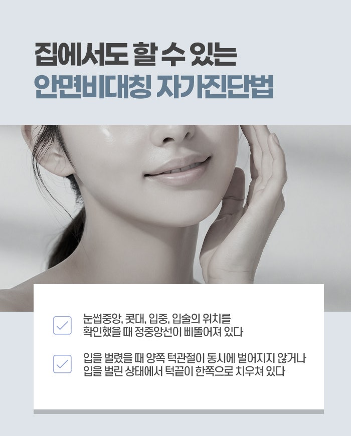 피부와 근육의 변화뿐만 아니라, 얼굴을 구성하는 뼈의 밀도가 감소하면서 반월당안면비대칭이 더욱 눈에 띄게 될 수 있습니다. 안면비대칭의 증상은 주로 얼굴의 형태나 외모에 나타납니다. 가장 흔한 증상은 얼굴의 한쪽이 다른 쪽에 비해 비정상적으로 크거나, 길게 느껴지는 것입니다. 예를 들어, 한쪽 눈이 다른 쪽 눈보다 더 크거나, 비대칭적인 턱선이 보이는 경우가 있습니다. 이러한 비대칭은 자주 거울에서 자신을 볼 때 발견되며, 외모에 대한 자신감에 영향을 줄 수 있습니다. 또한, 안면비대칭이 심할 경우, 얼굴의 일부분이 움직일 때 불편함을 느끼거나, 음식을 씹을 때 비대칭적인 힘이 가해져 턱에 통증을 느낄 수 있습니다. 심각한 경우, 안면근육의 기능이 정상적으로 작동하지 않아서 얼굴 표정이나 말하기에 어려움을 겪기도 합니다. 특히, 얼굴의 한쪽이 제대로 움직이지 않거나, 불균형하게 움직이는 경우에는 안면신경마비 등의 신경학적인 문제가 있을 수 있습니다.