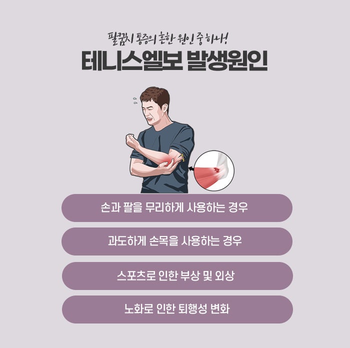 반월당테니스엘보우는 의학적으로 ‘외측상과염’이라고 하며, 팔꿈치 바깥쪽에 위치한 힘줄과 근육에 반복적인 스트레스가 가해져 염증과 미세 손상이 발생하는 질환입니다. 이 질환은 테니스를 즐기는 선수들에게서 주로 발견되어 ‘테니스엘보’라는 이름이 붙었지만, 실제로는 테니스를 하지 않는 사람들에게도 흔히 나타납니다. 주로 팔과 손목을 반복적으로 사용하는 직업이나 활동을 하는 사람들에게서 발생하며, 컴퓨터 작업, 목공, 배관, 페인트칠 등 팔을 과도하게 사용하는 다양한 작업에서 쉽게 찾아볼 수 있습니다. 테니스엘보의 원인은 과도한 사용과 반복적인 미세 손상에 있습니다.