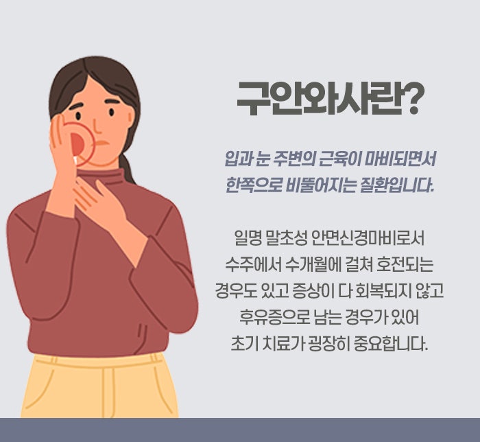 마비된 얼굴 부위를 너무 많이 사용하지 않도록 하고, 음식을 먹거나 말을 할 때 불편함을 느낀다면 천천히 하며 신경을 써야 합니다. 예를 들어, 음식을 먹을 때 마비된 쪽으로 음식물이 넘어가지 않도록 주의해야 하며, 말을 할 때 입술을 꽉 조이지 않도록 조심해야 합니다. 안면마비는 다양한 원인에 의해 발생할 수 있으며, 증상의 개선을 위해서는 적절한 치료와 생활 습관 관리 등이 필수적입니다. 안면마비는 대부분 시간이 지나면 자연스럽게 회복되지만, 치료와 관리가 병행되어야 더 른 회복을 기대할 수 있습니다.