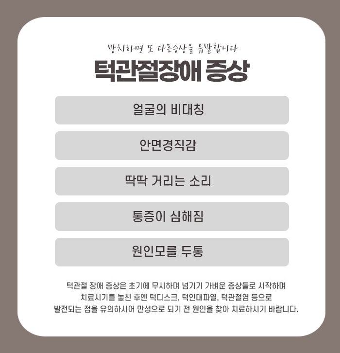 동성로턱디스크 즉 악관절 디스크는 턱 관절에 발생하는 문제로, 턱 관절의 디스크가 위치가 틀어지거나 변형되어 발생하는 질환을 말합니다. 턱디스크는 입을 벌리거나 씹을 때, 또는 말을 할 때 불편함을 유발하는데, 이 질환은 일반적으로 턱 관절에 부담이 가는 행동이나 외상, 혹은 다른 원인들에 의해 발생합니다. 턱디스크는 많은 사람들이 경험할 수 있는 질환으로, 그로 인해 겪는 불편함이나 통증은 일상생활에 큰 영향을 미칠 수 있습니다.