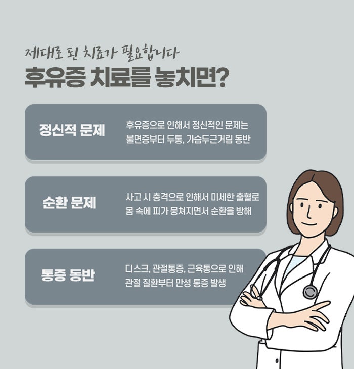 교통사고후유증은 신체와 정신 모두에 영향을 미쳐 생활의 질을 크게 저하시킬 수 있지만, 꾸준한 치료와 생활 관리로 충분히 개선할 수 있습니다. 때로는 회복 과정이 지루하고 힘들게 느껴질 수도 있지만, 그 과정 속에서 조금씩 좋아지는 자신의 몸과 마음을 믿고 지지하는 것이 무엇보다 중요합니다. 여러분이 겪고 있는 어려움은 혼자가 아니라는 점을 꼭 기억하시길 바랍니다. 도움을 받고 올바른 생활 습관을 꾸준히 실천한다면 분명 건강을 되찾을 수 있습니다. 매일의 작은 변화가 큰 회복으로 이어진다는 것을 잊지 말고 희망을 잃지 마시길 바랍니다. 여러분의 건강과 행복을 진심으로 응원하며 언제나 따뜻한 마음으로 함께하겠습니다. 부디 자신을 아끼고 사랑하는 마음으로 하루하루를 보내시길 바랍니다.