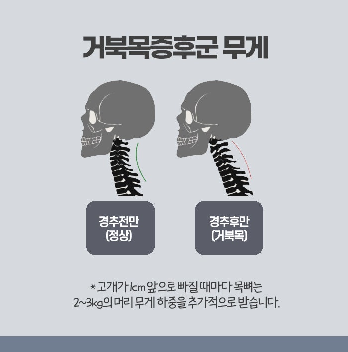 거북목은 본래 완만한 C자형 곡선을 유지해야 할 목뼈가 여러 요인으로 인해 일자 형태로 변형되거나 심하면 거북이처럼 앞으로 길게 빠져나오는 상태를 의미하며 현대인들의 생활 방식 변화로 인해 매우 빈번하게 관찰되는 체형의 변화 중 하나입니다. 우리 머리의 무게는 성인 기준 보통 4킬로그램에서 6킬로그램 정도에 달하는데 목뼈가 정상적인 곡선을 유지할 때는 이 무게가 골고루 분산되지만 고개가 앞으로 1센티미터씩 나올 때마다 목뼈에는 2킬로그램에서 3킬로그램 이상의 추가적인 하중이 가해지게 됩니다. 결국 거북목 상태가 지속되면 목 주변의 근육과 인대는 비정상적으로 무거운 머리 무게를 지탱하기 위해 과도하게 긴장하게 되고 이는 신체 전반의 불균형을 초래하는 시작점이 된다고 대구한의원에서는 말합니다.