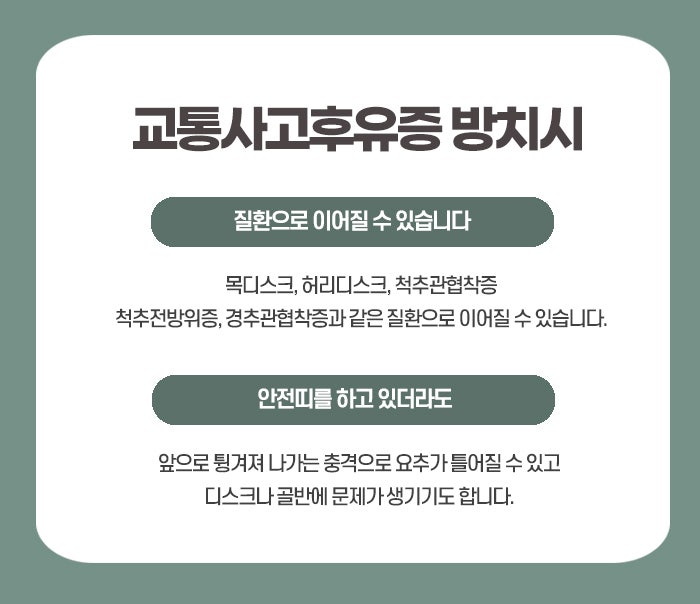 교통사고후유증은 자동차 사고라는 갑작스러운 외부의 충격을 받은 직후에는 별다른 외상이나 통증이 느껴지지 않다가 시간이 흐름에 따라 신체 곳곳에서 나타나는 다양한 불편 증상들을 일컫는 말로 사고 당시 몸에 가해진 물리적 힘이 근육과 인대 그리고 신경계에 미세한 흔적을 남기면서 발생합니다. 이러한 현상이 나타나는 주된 요인은 사고 순간 신체가 앞뒤나 옆으로 급격하게 흔들리면서 척추 마디마디를 감싸고 있는 연부 조직들이 비정상적으로 늘어나거나 수축하기 때문인데 이를 흔히 채찍질 손상이라고 부르며 눈에 보이는 상처가 없더라도 몸 안의 미세한 순환 체계에 교란을 일으키게 된다고 동성로야간진료한의원에서는 말합니다.