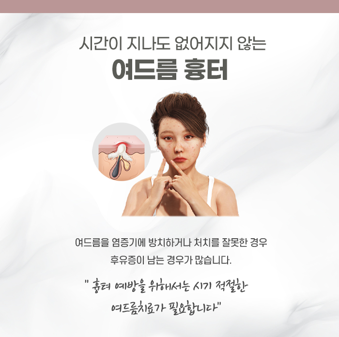 특히 깊은 흉터나 오래된 상처 자국은 개인의 자신감을 저하시킬 수도 있습니다. 우리 얼굴에서 나타날 수 있는 흉터에는 수두, 손톱, 수술자국, 화상흉터 등으로 다양하게 나타나게 되는데 다양한 유형 중에서 제일 흔하게 발생하는 손상은 바로 여드름흉터입니다. 감사합니다.