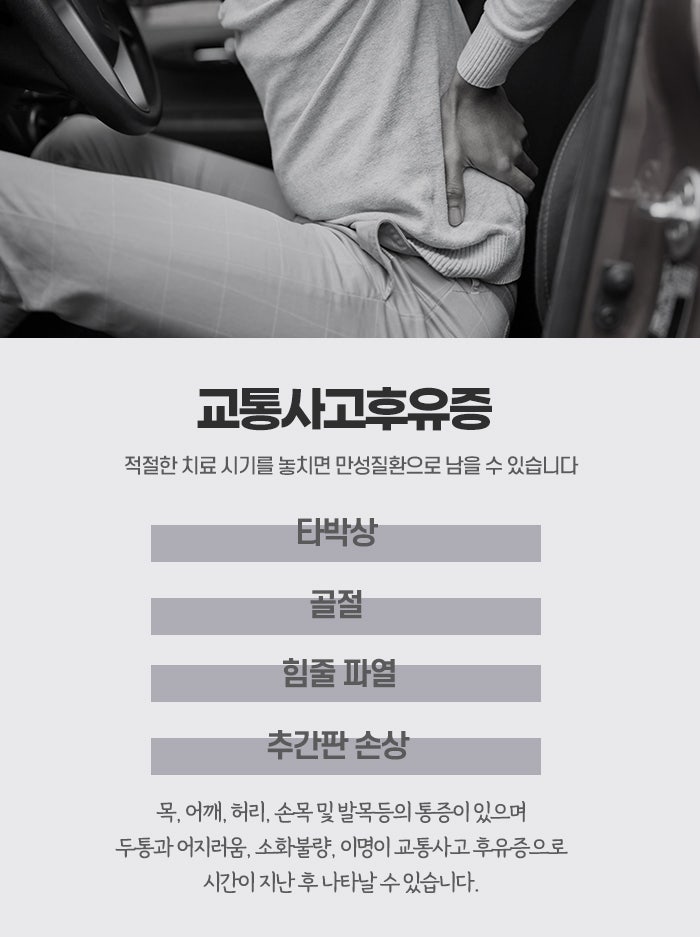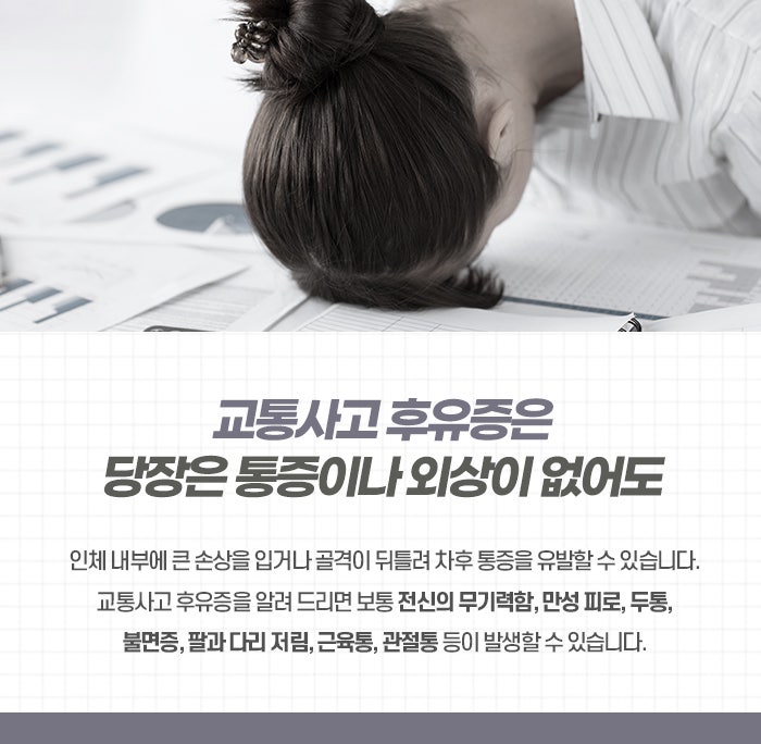 교통사고후유증은 자동차나 기타 이동 수단 간의 충돌 사건이 발생한 직후에는 뚜렷한 이상이 없다가 시간이 흐르면서 서서히 신체 곳곳에서 통증이나 기능 저하, 정신적인 불편함이 나타나는 상태를 의미합니다. 사고 현장에서는 갑작스러운 상황에 몸이 긴장하고 아드레날린이 분출되면서 통증을 느끼는 감각이 일시적으로 둔해지기도 하지만, 일상으로 돌아와 긴장이 풀리기 시작하면 짧게는 수일에서 길게는 수개월이 지난 뒤에야 잠복해 있던 이상 신호들이 고개를 들기 시작합니다. 이러한 상태는 단순히 타박상을 입은 수준을 넘어 우리 몸의 미세한 순환 체계와 신경계, 그리고 골격의 정렬에 가해진 충격이 응축되어 나타나는 결과물이라고 이해할 수 있습니다. 특히 교통사고후유증의 대명사로 불리는 편타성손상은 사고의 순간 차체가 흔들리며 사람의 몸이 마치 채찍을 휘두르는 것처럼 앞뒤 혹은 좌우로 크게 꺾이면서 발생하는 손상을 말한다고 반월당한의원에서는 이야기합니다.