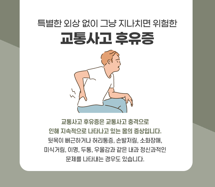 이러한 후유증은 단순한 근육통으로 착각하기 쉽습니다. 목이나 허리가 뻐근하고 두통이 잦으며, 무기력해지거나 불안한 감정이 생기기도 합니다.