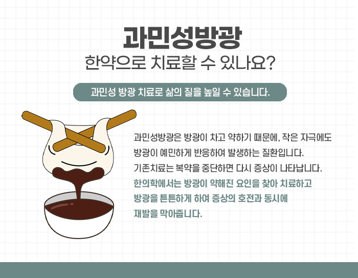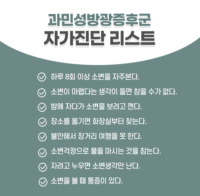 생활습관 개선과 더불어 적절한 침 치료와 한약치료가 이루어진다면 과민성 방광은 고치기 어려운 질환이 아닙니다. 혼자서 고민하지마시고 치료를 받아보시기 바랍니다.