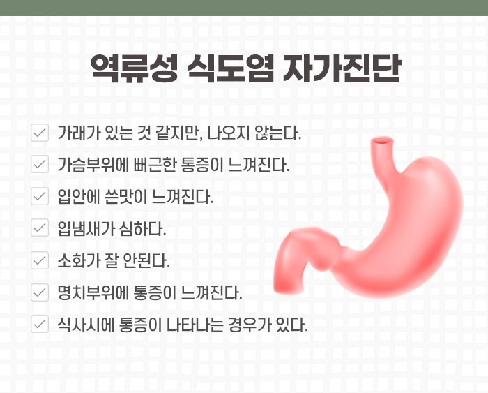 신트림은 위에서 나온 내용물이 입 안으로 올라오는 증상으로, 역류성 식도염 환자에게 흔히 나타납니다. 신트림은 위산이 입에 느껴지거나 산미가 남는 불쾌한 증상입니다. 식도가 자극을 받으면 목 이물감이나 목소리 변화, 목 쓰림 등의 증상이 나타날 수 있습니다. 이는 위산이 목을 자극해서 발생하는 증상으로, 만성적으로 나타날 수 있습니다. 음식을 먹은 후 트림이나 더부룩함, 소화불량을 느끼는 경우가 많습니다. 이는 위장이 정상적으로 음식을 소화하지 못하고 역류로 이어지기 때문입니다. 식도에 위산이 자주 역류하면 기침이나 호흡 곤란이 발생할 수 있습니다.