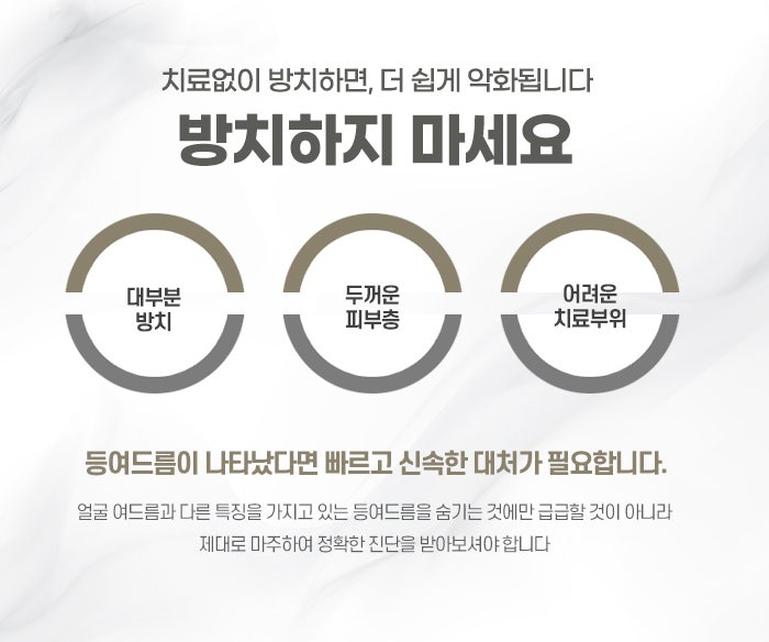 반월당등여드름은 얼굴에 비해 상대적으로 신경을 덜 쓰는 부위에 생기기 때문에, 많은 사람들이 이를 간과하기 쉽습니다. 그러나 몸 여드름이 발생하면 자신감에 큰 영향을 미칠 수 있으며, 심한 경우 흉터를 남기기도 합니다. 중요한 것은 예방이 최선이라는 점입니다. 여드름을 예방하고, 이미 발생한 여드름을 관리하는 데에는 꾸준한 관리와 올바른 생활 습관이 필요합니다. 피부는 우리의 건강을 지켜주는 중요한 장기이기 때문에, 세심한 관심을 기울이는 것이 중요합니다. 단순히 피부의 문제가 아닌, 우리의 생활 방식과 직결된 문제입니다. 옷차림, 운동 후 세안, 그리고 피부에 맞는 제품 사용 등 작은 습관이 모여 몸 여드름 예방에 큰 도움이 될 수 있습니다.