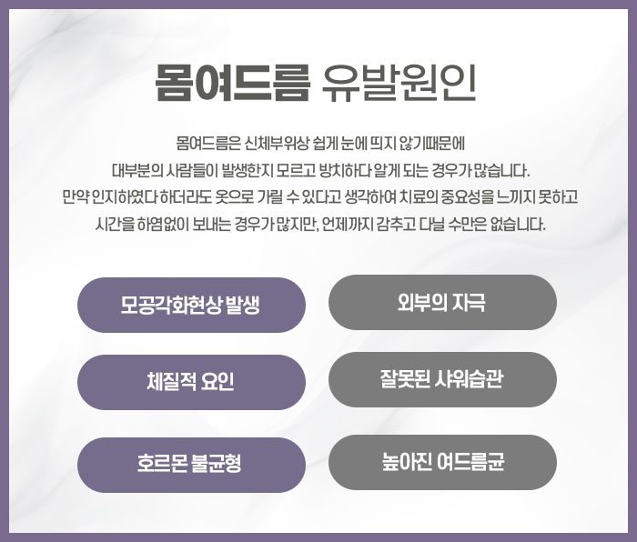 또한, 피부 자극이 적은 화장품을 사용해 피부가 민감해지지 않도록 해야 합니다. 가슴여드름은 피지선의 과잉 활동, 호르몬 변화, 스트레스 등 다양한 원인으로 발생할 수 있으며, 이를 관리하기 위해서는 꾸준한 청결 관리와 건강한 생활 습관이 중요합니다. 동성로가드름이 생기면 단순한 미용적인 문제에 그치지 않고, 자신감 저하나 불편함을 초래할 수 있습니다. 따라서 가슴여드름을 예방하고 관리하는 것이 매우 중요합니다. 여드름 관리의 핵심은 피부 청결을 유지하고, 식습관 개선과 스트레스 관리를 통해 피지 분비를 조절하는 것입니다.