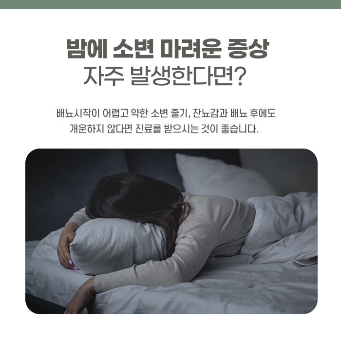야간뇨는 빈뇨의 한 형태로, 밤에 자주 소변을 보려고 깨는 경우가 있습니다. 보통 성인은 밤에 한 번 정도 소변을 보는 것이 일반적이지만, 빈뇨가 있을 경우 밤에 2번 이상 일어나서 화장실에 가게 되는 경우가 많습니다. 하루 8회 이상의 배뇨가 지속되면 빈뇨에 해당하며, 이로 인해 일상생활에 불편함을 겪을 수 있습니다. 그리고 소변을 본 후에도 배뇨가 완료되지 않은 느낌이 들거나, 자주 배뇨하고 나서도 불편함을 계속 느끼는 경우가 많습니다. 빈뇨는 방광염이나 요로 감염증 등 배뇨 기관에 염증이 생기면 방광이 자주 자극을 받아 소변을 자주 보게 될 수 있습니다. 이 경우, 소변을 보려는 강한 충동이 자주 발생하게 된다고 동성로빈뇨치료한의원에서는 설명합니다.