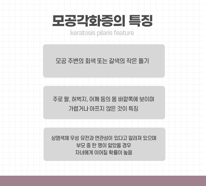 팔, 허벅지, 엉덩이, 심지어 얼굴에 작은 뾰루지처럼 오돌토돌하게 올라오는 피부 트러블로 고민 중이신가요? 여드름 같기도 하고, 때로는 건조하고 가렵기까지 한 이 증상은 단순한 트러블이 아니라 모공각화증일 수 있습니다. 흔히 ‘닭살’이라고 불리며 많은 사람들이 겪는 피부 질환이지만, 치료가 어렵거나 장기화되기 쉬워 조기에 동성로피부관리와 정확한 접근이 중요합니다. 모공각화증은 피부의 각질이 과도하게 생성되며 모공을 막아 생기는 만성 피부 질환입니다 팔, 허벅지, 등, 엉덩이처럼 피지선이 적고 마찰이 많은 부위에 잘 생기며, 오돌토돌한 피부, 붉은 반점, 건조감, 가려움 등의 증상이 나타납니다.