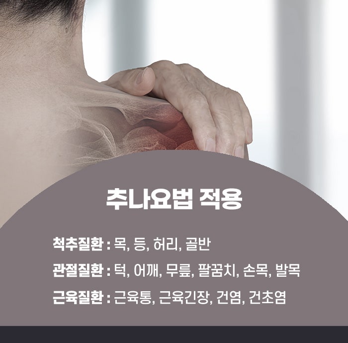 동성로한의원추나요법이 적용되는 대표적인 질환으로는 목디스크, 허리디스크, 일자목증후군, 거북목증후군, 척추측만증, 좌골신경통, 퇴행성 디스크 질환, 근막통증증후군, 오십견, 어깨충돌증후군, 턱관절 장애, 무릎통증, 골반 불균형, 교통사고 후유증 등이 있습니다. 특히 현대인들에게 흔한 거북목이나 일자목, 골반 틀어짐, 척추의 비대칭은 대부분 자세에서 비롯되며, 이런 구조적인 이상은 단순 운동이나 스트레칭만으로 교정이 어려운 경우가 많습니다. 이럴 때 추나요법은 전문적인 수기 조작을 통해 관절과 척추, 연부조직을 정밀하게 다루어, 신체의 좌우 균형을 바로잡고 긴장된 근육을 풀어주며 약화된 근육을 자극해 기능을 회복시키는 치료법으로 도움이 됩니다.