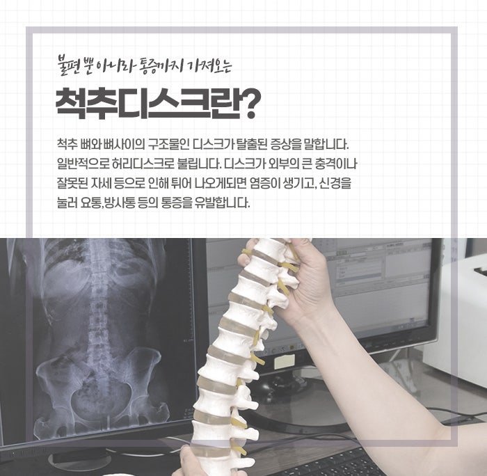 동성로척추디스크는 정확히 말하면 ‘추간판 탈출증’이라는 질환으로, 척추뼈 사이에 위치한 추간판이라는 구조물이 원래 위치에서 밀려나와 신경을 압박하면서 통증을 유발하는 질환을 말합니다. 일반적으로는 ‘디스크’라는 말로 널리 알려져 있지만, 의학적으로는 추간판 탈출증 혹은 추간판 돌출증으로 표현됩니다. 척추는 경추, 흉추, 요추로 나뉘며, 각 척추뼈 사이에 추간판이 존재하여 충격을 흡수하고 척추의 움직임을 부드럽게 해주는 역할을 합니다. 이 추간판은 겉의 섬유륜과 중심부의 수핵으로 구성되어 있는데, 반복적인 무리한 움직임이나 노화 등의 요인으로 인해 섬유륜이 찢어지고 수핵이 밀려나오면 인근의 신경을 자극하거나 압박하게 되어 통증이 생깁니다.
